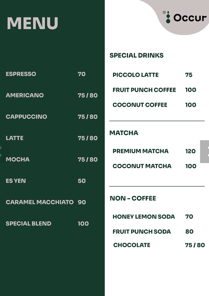 Whether you’re catching up with friends, diving into business, or simply enjoying a peaceful moment with a good book, Occur Coffee promises to enchant you with its delightful atmosphere and exquisite offerings.